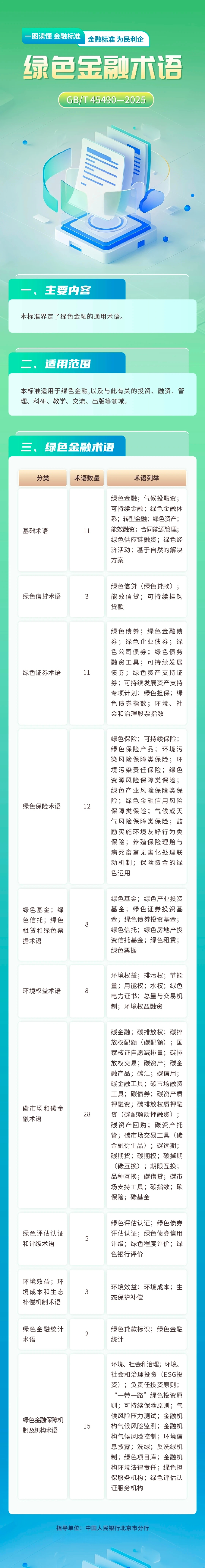 今天推出的是“一图读懂 金融标准”系列第5篇,为大家解读《绿色金融术语》(GB/T 45490—2025)。